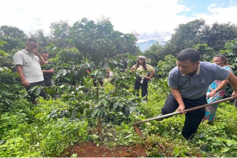 培训过程中,老师采用“理论授课+实地操作+问题解答”的方式进行,就咖啡良种、切杆、病虫害防治、除草松土等生产技术措施进行讲解。参训咖农全程认真聆听,积极向老师请教咖啡种植管护相关问题,老师用通俗易懂的语言进行讲解并现场示范,帮助咖农们听懂、学会,真正掌握种植技术要领,参训的咖农们纷纷表示受益匪浅。