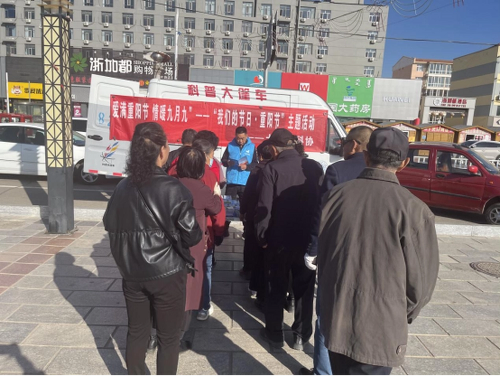 金秋送爽,丹桂飘香,又是一年重阳至,为进一步弘扬中华民族尊老、敬老、爱老、助老的传统美德,丰富社区居民的精神文化生活,倡导积极健康的生活方式。借助传统节日重阳节为契机,10月11日,土默特左旗科协组织大篷车在察素齐镇原政府广场开展了以“爱满重阳节,情暖九月九”“我们的节日·重阳节”为主题的科普志愿服务活动。