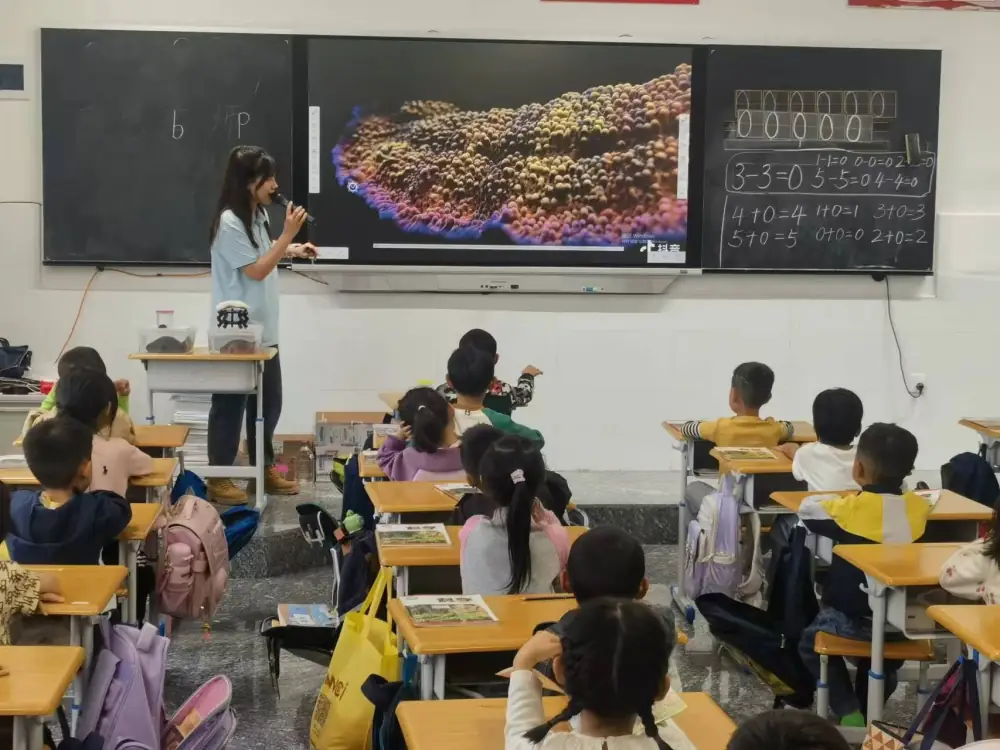 2024年9月23日,昭阳区科协、大美昭通海洋世界携手走进昭阳区省耕九年一贯制学校,为一年级同学送去了一场丰富多彩的趣味海洋科普活动。大美昭通海洋世界的科普老师可岚,从事海洋生物管理和研究已有6年多的时间,曾参加全国科普大赛并获得优秀奖。可岚老师通过精美的图片、生动的视频和有趣的模型,向同学们展示了海洋的神奇与美丽。从神秘的海洋生物到生活方式、生存技能,从丰富的海洋资源到严峻的海洋环境问题,一步步引导同学们置身于广阔无垠的蓝色海洋世界,在寓教于乐的过程中将知识传授给同学。科普人员还为小学部一个班级、初中部三个班级的同学开展了精彩的机器狗表演,观看表演的同学表现出了极大的热情和兴趣性,并希望在将来多开展类似的活动。2024年9月23日,昭阳区科协、大美昭通海洋世界携手走进昭阳区省耕九年一贯制学校,为一年级同学送去了一场丰富多彩的趣味海洋科普活动。大美昭通海洋世界的科普老师可岚,从事海洋生物管理和研究已有6年多的时间,曾参加全国科普大赛并获得优秀奖。可岚老师通过精美的图片、生动的视频和有趣的模型,向同学们展示了海洋的神奇与美丽。从神秘的海洋生物到生活方式、生存技能,从丰富的海洋资源到严峻的海洋环境问题,一步步引导同学们置身于广阔无垠的蓝色海洋世界,在寓教于乐的过程中将知识传授给同学。科普人员还为小学部一个班级、初中部三个班级的同学开展了精彩的机器狗表演,观看表演的同学表现出了极大的热情和兴趣性,并希望在将来多开展类似的活动。