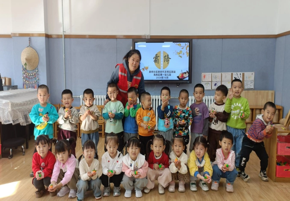黄叶已先霜降落,白云长在雨余生。霜降是秋季的最后一个节气,也意味着冬天的开始。为弘扬中华民族优秀传统文化,传播科学思想。10月23日,海南区科协联合区第一幼儿园、新桥社区共同开展“感党恩、听党话、跟党走”“弘扬科学家精神”“事事如意 巧手拾取”科普志愿服务活动。
