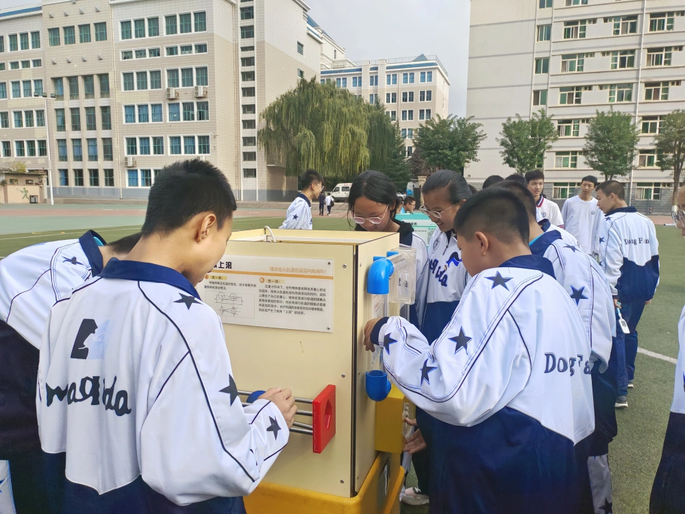 活动现场,可爱的机器人伴着激扬的音乐节拍整齐划一地挥舞着机械臂,像极了一群“广场舞”的小精灵,机器狗在孩子们的身边奔跑跳跃,不时翻身打滚展示着“千姿百态”,精彩的表演引来了师生们阵阵欢呼。科普大篷车的科普展品吸引了同学们的目光,大家对一个个稀奇有趣、异彩纷呈的科普展品充满了好奇,纷纷上前围观并动手操作体验,在实践中感受科学的魅力,更加深了对物理知识的进一步理解。