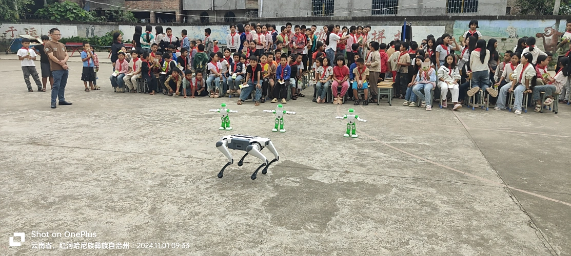 活动现场,科普大篷车仿佛一座流动的科技馆,展示了VR、四足机器人、机器狗、电子象棋等众多丰富的科学展品。让学生直观感受科学魅力,激发他们对自然现象的好奇心和探索欲。同时,科普志愿者向现场师生广泛宣传《特殊食品安全知识读本》《食品安全知识宣传手册》《科普知识手册》等科普知识,通过发放宣传资料、悬挂条幅、科普讲解、现场互动问答等形式,引导大家深入了解食品安全知识,进一步提升青少年食品安全防范意识,营造了“食品安全牢记心 健康幸福伴你行”的良好氛围。
