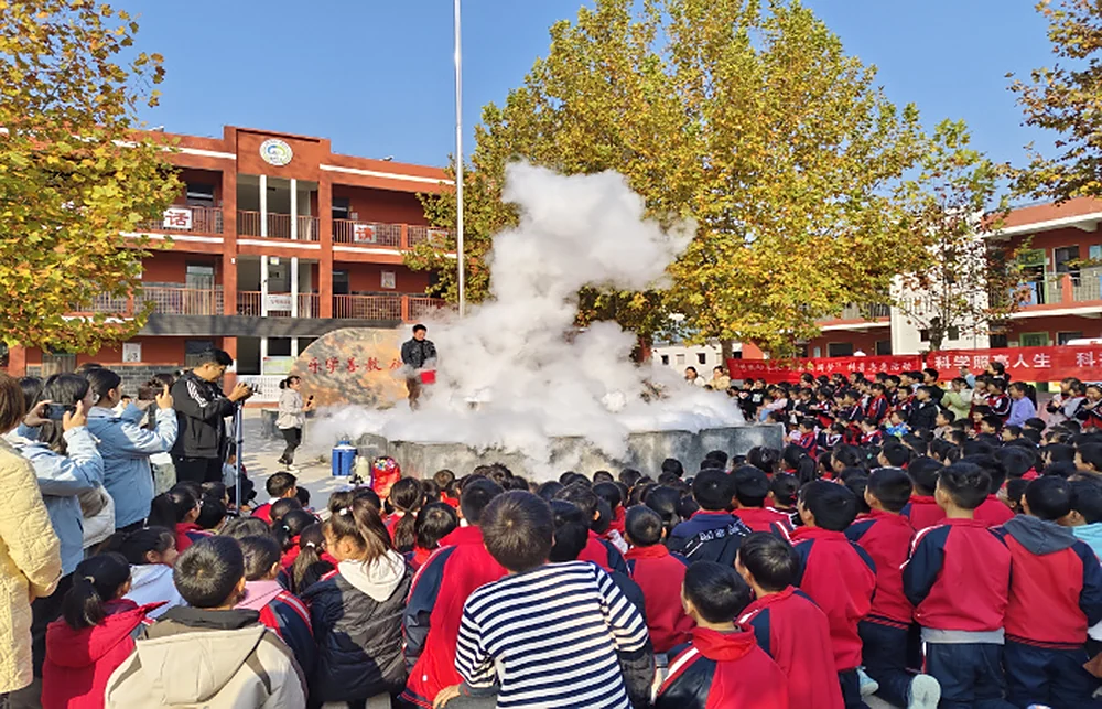 新乡市科协特邀河南师范大学物理系博士生导师马淑红教授到场为师生们表演液氮乒乓球、水火箭等大型科学表演秀,神奇的科学现象,一次次将活动推向了高潮,校园里始终洋溢着同学们的惊叹声和欢呼声。