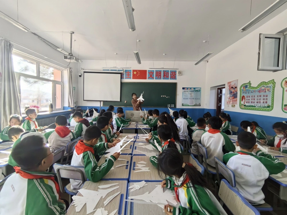 在实践操作中,科普志愿者仔细为学生们示范了航空模型的制作步骤,带领孩子动手组装并手掷示范歼15飞机模型。学生们亲身体验制作模型的乐趣,认真组装,不断调整、尝试,满怀憧憬制作自己的“梦想号”大飞机。制作完成后,同学们在学校操场上举行了手掷飞机比赛,孩子们摩拳擦掌,跃跃欲试,一双双智慧的眼睛闪烁着光芒充满希望,一架架精美的航模承载着梦想飞向远方。