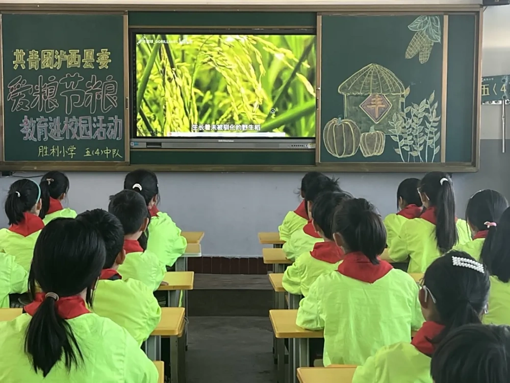 活动伊始,科普志愿者们带领全体学生齐声诵读《传承“禾下乘凉梦”的青春接力—“青春守护中国粮”倡议书》,朗朗的诵读声坚定了同学们对爱粮节粮的承诺。随后,全体学生集中观看《一粒米的奇妙旅程》《青春守护中国粮》节约粮食宣传片,视频以生动有趣的方式展示了一粒米从播种、成长、收获,再到端上餐桌的全过程,让同学们深刻体会到了粮食的来之不易。观看结束后,同学们积极分享自己的感悟,纷纷表示今后要更加珍惜每一粒粮食,并集中展示了各自爱粮节粮优秀手抄报和绘画作品,一幅幅精美的作品,独具艺术观赏性,集中体现了同学们对爱粮节粮的深刻理解和独特创意。活动最后,科普志愿者还为学生们普及《反食品浪费法》《未成年人保护法》《科学普及法》等法律法规,发放宣传手册,教育引导孩子们崇尚勤俭节约,以节约粮食为荣,铺张浪费为耻,传承中华民族勤俭节约、爱粮节粮的优秀传统美德。