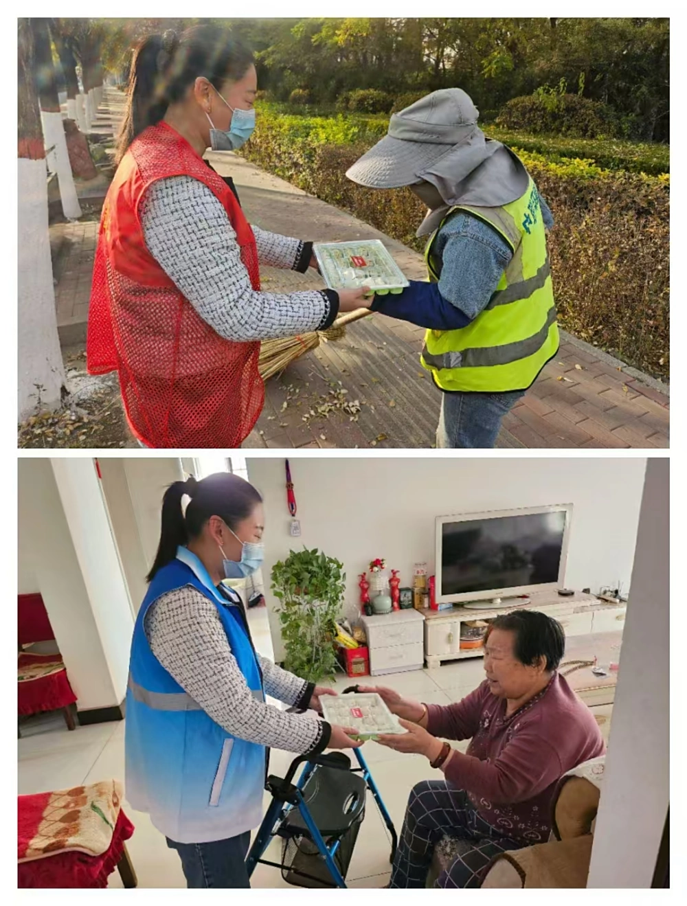 活动开始后,包联干部和社区工作人员纷纷挽起袖子,大展身手。大家分工明确,有的负责擀面皮,有的负责调馅料,有的围坐在一起包饺子。餐餐世间味,最是此物鲜。经过大家的共同努力,桌上就摆满了包好的饺子。随后,工作人员们将煮好的饺子盛在碗里,端到桌子上,各族居民群众一起品尝和分享冬日里的温暖。接着,包联干部、工作人员和辖区在职党员连忙分头行动,将饺子分别送到社区老党员、退役军人、残障人士、困难户等人的家中,为他们送上冬日的祝福与关怀。