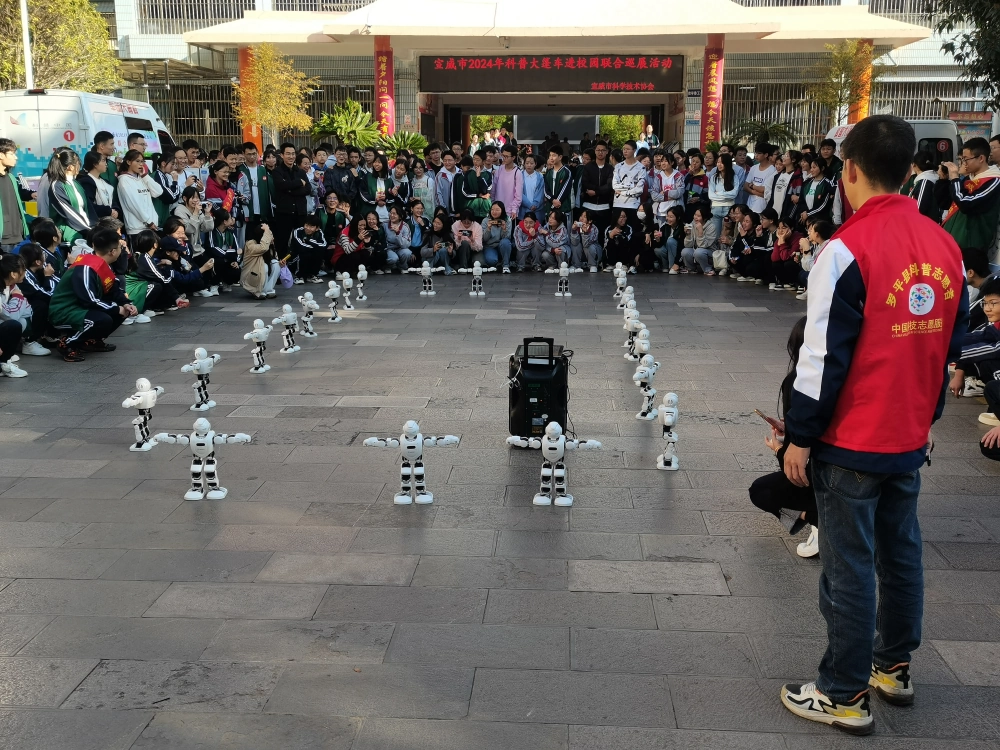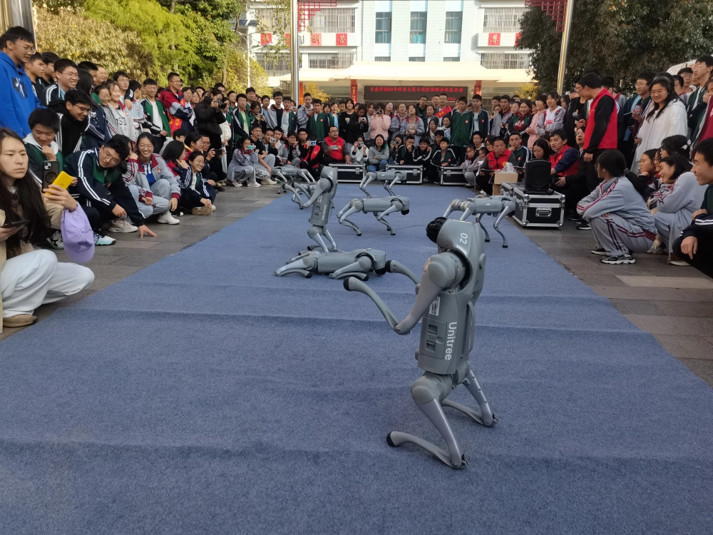 机器人表演阵营,同学们为机器人的每一个劈叉、倒立、鞠躬等精细动作表演而惊喜尖叫。机器狗的阵营,同学们好奇那门笨重的机器狗为什么能把每个跳跃、匍匐、行走、跑步、翻转、握手等动作做得那门流畅自然,他们充满疑问的同时也为伟大祖国日新月异的科技进步而惊叹。