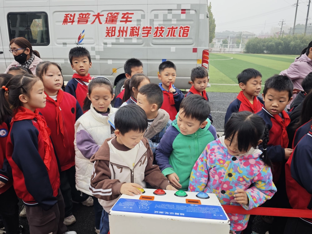 11月14日上午,郑州科技馆科普大篷车缓缓开进巩义市小关镇龙门小学给全校师生带来一场神奇的科技体验。