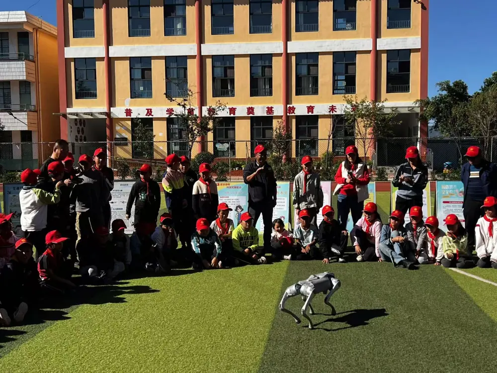 可爱的“机器狗”在现场和同学们零距离互动,科技辅导员给同学们讲解机器狗在救援、搬运物品、军事领域的运用,同学们认真聆听,积极探讨,进一步萌发了对科学探索的兴趣。