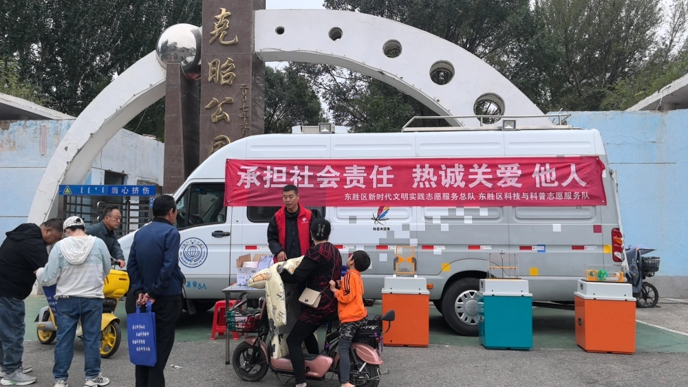 内蒙古东胜区科协科普大篷车走进公园街道前进社区伊克昭公园开展科普宣传活动