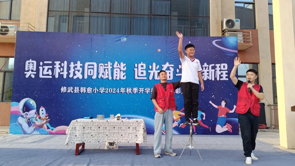 秋光为序,筑梦启航。2024年9月11日下午,焦作市科技馆“馆校结合·点亮科学梦”科普大篷车进校园活动,走进了修武县韩愈小学。此次活动是2024年焦作市全国科普日系列活动之一,服务青少年2000余人。“一张普通的卫生纸,为什么能撑得起几百斤的重量呢?”在表演“一纸托千斤”科学实验时,科普志愿者巧用摩擦力的力量,让一张薄薄的卫生纸上承载了几个人的重量也不破。同学们亲眼见证了薄纸托起重物的神奇效果,不禁啧啧称奇,争先恐后要上前一探究竟。科普志愿者还表演了“压力与压强”“作用力与反作用力”等科学实验,并邀请现场同学走上舞台参与其中,亲身感受科学的奇妙之处。随后,科普志愿者带领同学们有序参观了“懒惰杯”“最速降线”“锥体上滚”等二十余件车载科普展品,并耐心地讲解了每件展品的操作方法和科学原理。两个多小时的活动,科普志愿者不断解答同学们的科学问题,同学们也始终保持着高昂的探究热情,教学相长,桃李成蹊。