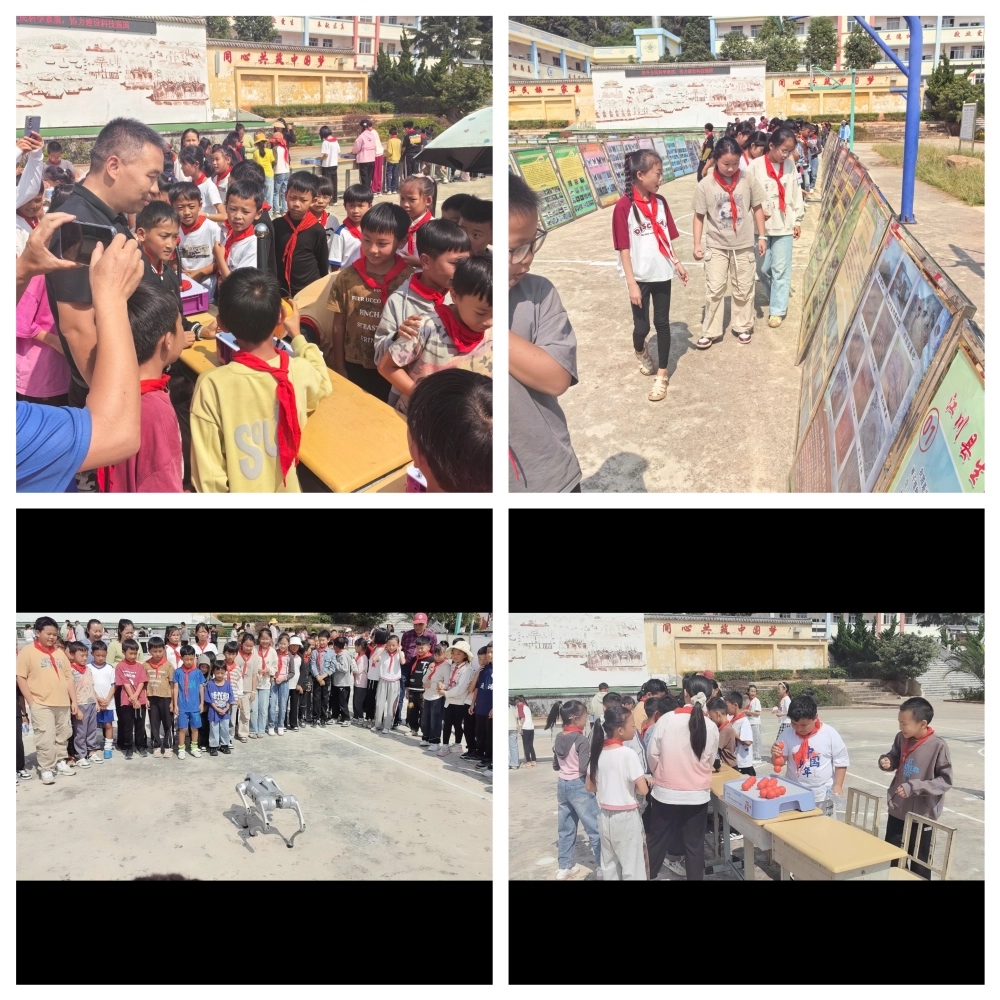 “机器狗”和机器人的出现将现场活动氛围推向了高潮,灵活多变的机器狗一会儿空翻,一会儿跳舞,还和现场的同学们比心作揖;机器人时而跳舞,时而做俯卧撑,引得全场雀跃、欢呼雷动,在整个活动中,同学们认真聆听,兴致盎然,纷纷表示将不断学习科学知识,争做有志、有识、有为的新时代好少年,为科技强国贡献自己的力量!