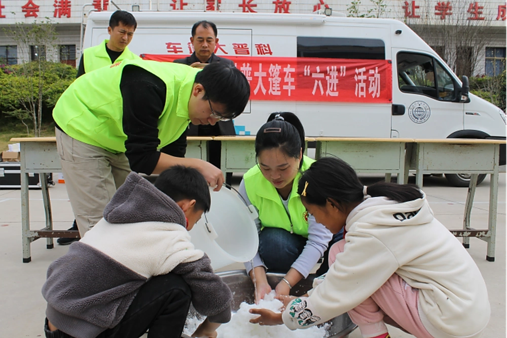 11月21日,在小雪节气来临之际,砚山县科协科普轻骑兵将科普大篷车开进者腊乡公革小学,与学校联合开展“科普进校园、同台共展演”主题科普宣传活动,通过开展用吸水树脂制作“人工造雪”科普小实验等活动,为全校260余名师生带来了一份特殊的科普盛宴。