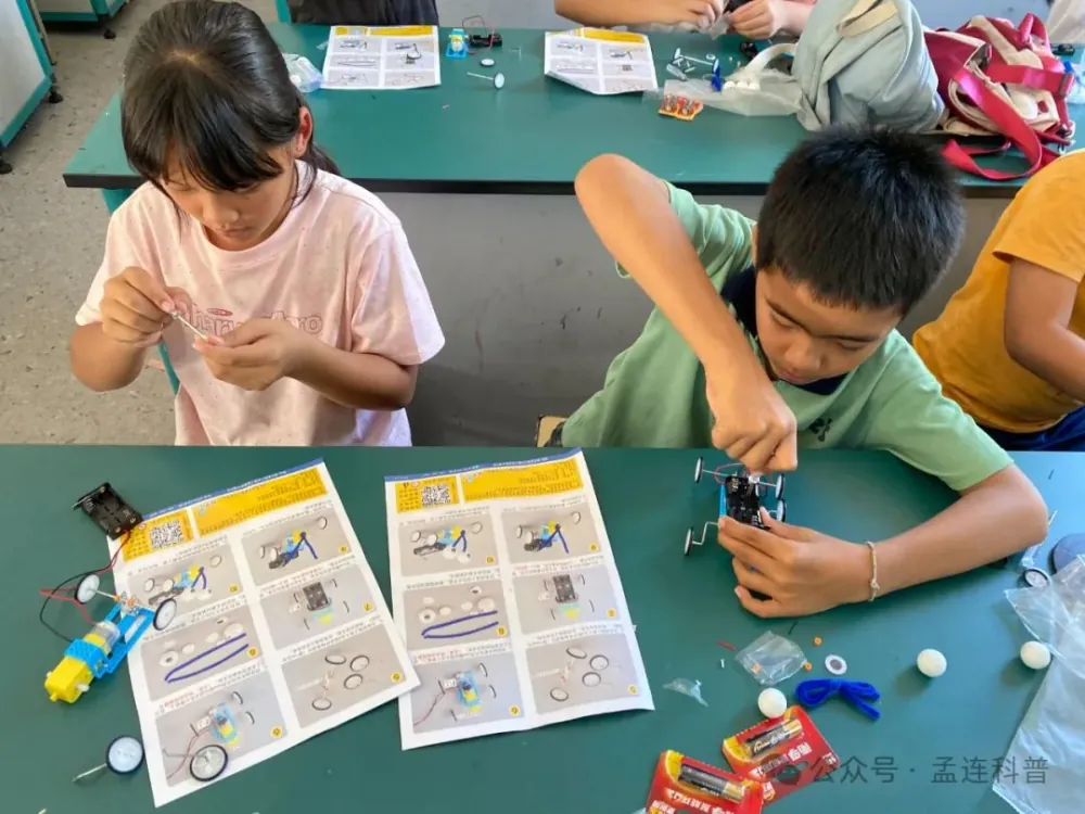 科普工作者在课堂上简单地向同学们介绍了爬虫机器人的基本构造、工作原理、操作步骤,让同学们对爬虫机器人有了初步的了解。在动手制作环节,大家激情满满,在科普工作者的引导下,依次连接导线、安装车轮、固定小窗板、固定电池盒。当同学们看到自己的成品时纷纷表示:“这次活动让我学到了很多关于电动机和爬虫机器人的知识,还亲手拼装了自己的小机器人,真的太有趣了!我希望以后还能参加更多这样的活动。”