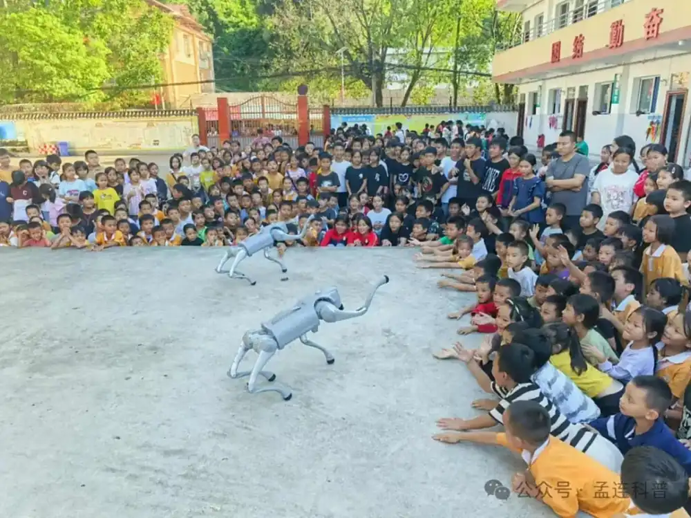 科普大篷车展示了一系列富有吸引力的科普展品,学生满怀激情地参与了各类实验和互动游戏,“机器狗、机器人”进校园,更是受到了师生的热捧,俏皮的“机器狗”时而趴下,时而起身,时而追逐着在场的同学们,在遥控操作下,“机器人”灵活地做出“踏步”“奔跑”等动作,展示着优美的“身姿”,引得大家连连拍手称奇。