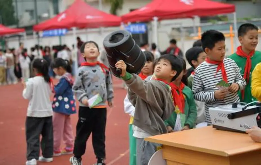 大家兴奋不已,掌声、欢呼声响彻操场。孩子们在一个接一个有趣的科学实验秀中学习科学知识,点燃了对科学奥秘的探索兴趣。