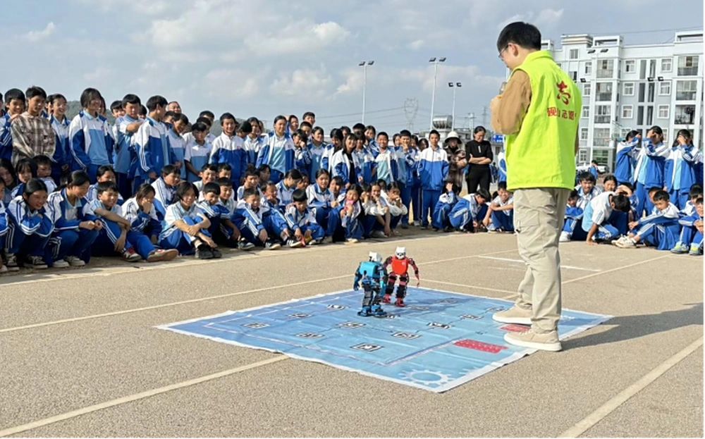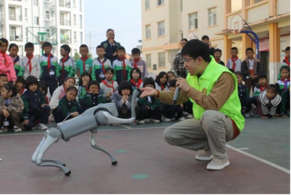 今天的两场活动气氛格外热烈,随着音乐奏响,机器人和机器狗灵动地开始舞蹈表演,欢快的节奏、有趣的动作让现场沉浸在一片欢声笑语之中。科普志愿者巧妙地在表演过程中,穿插讲述我国当前的科技发展状况。从航天领域的巨大突破到人工智能的广泛应用,我国一项项领先世界的科技成果、不断突破的创新佳绩,让学生们听得热血沸腾,自豪感与国家安全感油然而生。在学生们津津有味观看表演之时,志愿者们积极引导其思考机器人和机器狗在未来的发展方向以及应用场景,学生们纷纷畅所欲言发表自己的感想,这一举措有效培养了学生们的思维能力以及对科学的兴趣。展演的最后环节,还组织学生们亲身体验蕴含各种科学奥妙的展教设备,在科普志愿者的讲解下,学生们亲自操作体验,更是加深了同学们的理论知识,营造了浓厚的学习氛围。