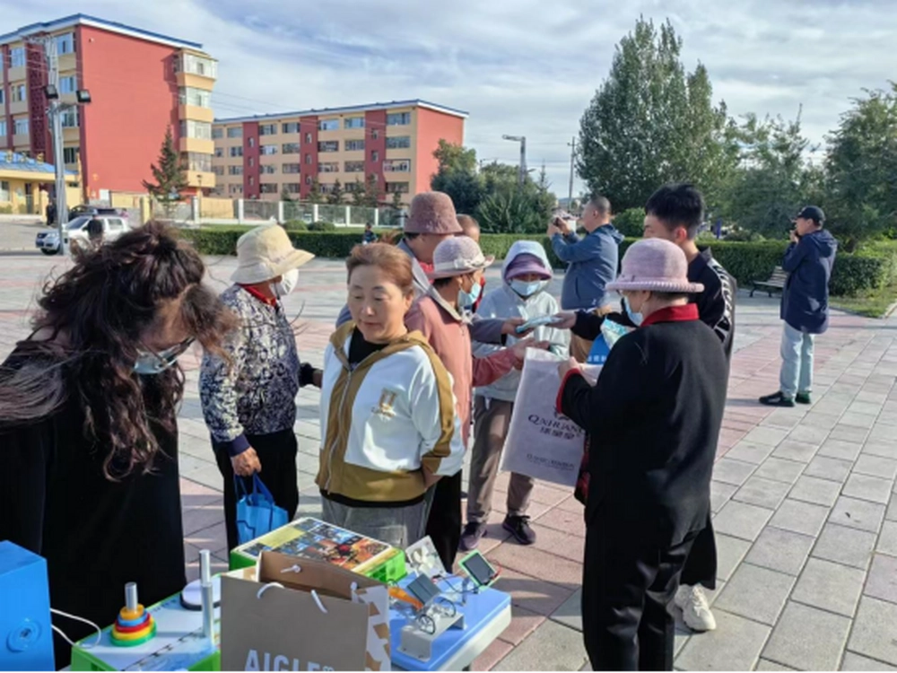 活动最后向参与的居民和儿童发放了科普礼物,发放科普礼物进一步增强了活动的教育效果,鼓励更多人参与到科学学习和探索中来,增加了活动的吸引力和教育意义。