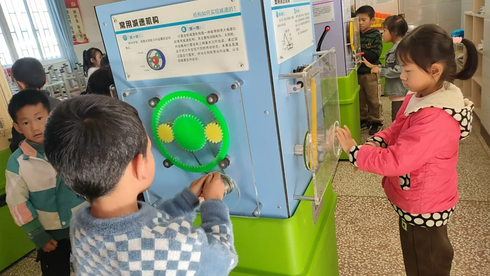 机械传动:通过展示齿轮、链条皮带等传动装置,让孩子们直观了解机械传动的基本原理及其在日常生活中的应用。