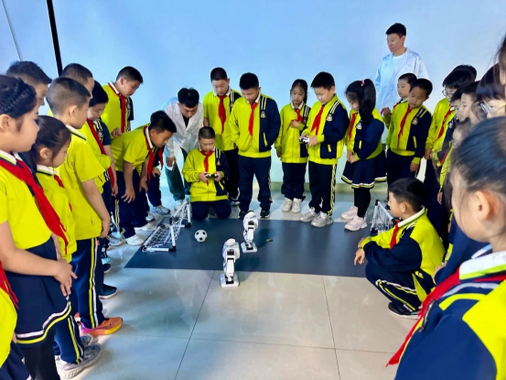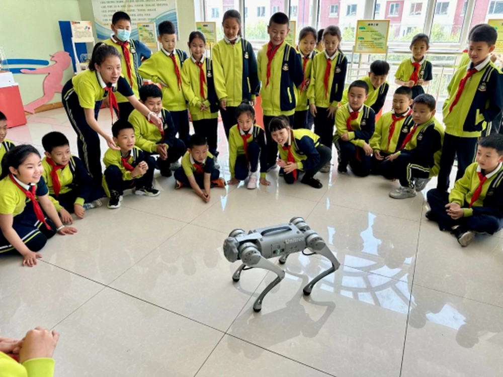 机器狗的出现,将本次活动推向高潮。机器狗身怀绝技,不仅能够自主行走、灵活转弯,还能完成一系列复杂的动作,赢得了在场观众的阵阵掌声。可爱的“机器狗”体内有一片极小的晶片,赋予机器狗智能,让它做出摆尾、打滚各种有趣的动作,还能在工作人员的操控下,上演舞蹈、拜年、撒娇等灵活多变的姿态,让同学们惊喜连连,开启对智能科技的无限畅想。一双双小手抚摸着它的头身,更赋予了它更鲜活的生命力。