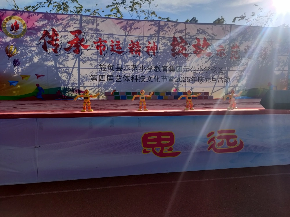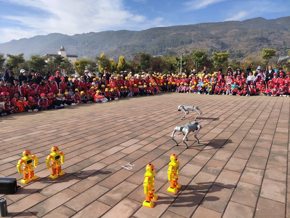 在艺体科技文化节开幕式上,县科协机器人与机器狗的精彩表演无疑是全场瞩目的焦点。伴随着动感的音乐,机器人整齐划一地舞动着机械手臂,动作精准流畅,仿佛一群训练有素的舞者,用科技的语言演绎着独特的韵律。而机器狗更是活力四射,它们奔跑如飞,跨越障碍轻松自如,还不时地与台下的同学们互动,或摇摇尾巴,或发出可爱的叫声,引得阵阵欢笑与尖叫。孩子们的眼睛紧紧盯着舞台,心中满是对科技神奇力量的震撼与向往,那一双双明亮的眼眸,恰似夜空中闪烁的繁星,映照着科技的无限魅力。
