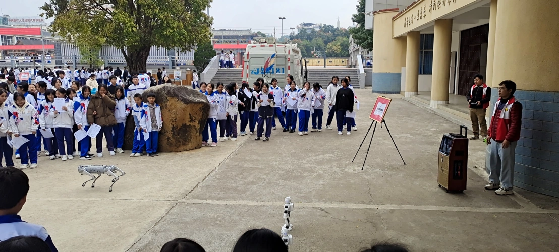 踏入活动现场,最引人瞩目的当属人工智能表演区。随着动感的音乐节奏,它们灵活地扭动身躯,精准地变换舞步,每一个动作都流畅自然。机器狗也毫不逊色,它在场地中穿梭自如,听从指令完成各种高难度动作,引得同学们阵阵欢呼。