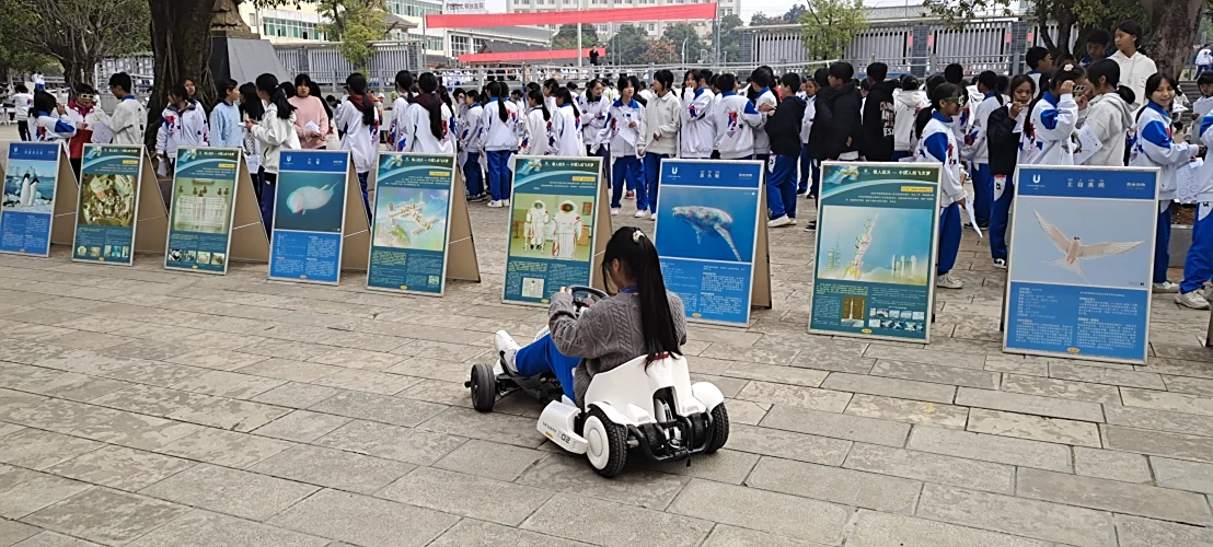 科普展板展区宛如一条知识的长河,沿着展板徐徐前行,同学们仿佛置身于科学知识的浩瀚海洋。