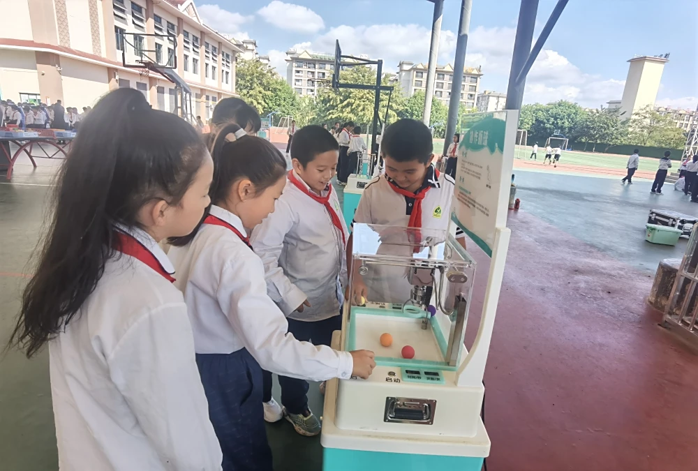 科普展品体验区无疑是活动的一大亮点,这里汇聚了物理、数学等多学科的思维启迪展品。同学们满怀好奇地穿梭其中,积极尝试模型搭建,面对复杂挑战时相互鼓励,在协作中顺利完成多项操作,充分享受动手实践带来的乐趣与成就感。