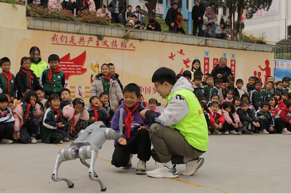 活动现场,科普志愿者带着炫酷的机器人、灵动的机器狗闪亮登场,它们活力四射地舞动、摆出奇妙动作,诙谐幽默的展示风格,瞬间点燃学生们的热情,孩子们近距离接触这些高科技“萌宠”,欢呼声、惊叹声此起彼伏,尽情感受前沿科技的超强魅力,讲解过程还穿插假期防溺水及食品安全等内容增强学生的安全意识。不仅如此,志愿者还开启科普“名人堂”,袁隆平、邓稼先等一众科学巨星的故事娓娓道来,在学生心间种下榜样的种子。在讲解演示环节结束后,志愿者带领学生玩转科学知识,各种集知识性趣味性为一体的展教设备以及科普展板陈列开来,学生们纷纷上手实操,沉浸式畅游在科学知识的海洋,好奇心得到极大满足。