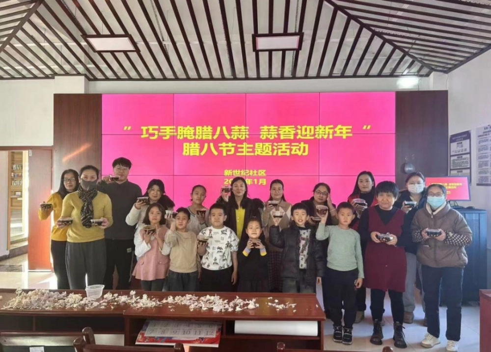 腊八年味至、家家盼团圆,一进入腊月,年味儿一日浓似一日。为弘扬中华优秀传统文化,营造良好的节日氛围,各社区在传统节日“腊八节”来临之际,开展“香飘腊八蒜 浓情迎新年”腊八活动。在科普志愿者的指导下,居民们开始动手剥蒜、泡蒜、腌制,大家边制作边交流心得体会,欢声笑语充满了整个活动现场,经过大家精心制作,一罐罐散发着浓浓醋香的腊八蒜新鲜出炉。