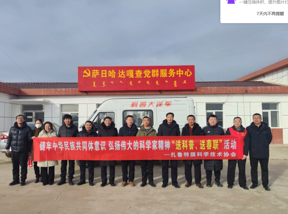 1月7日,扎鲁特旗科协依托科普大篷车流动科普功能,联合旗统战部、图书馆、旗书法家协会等单位和组织的志愿者一行20余人,利用整整一天的时间,先后深入嘎亥图镇萨日哈达嘎查和呼和哈达嘎查,为当地农牧民送去一场富含科技营养和春节祝福的盛宴。