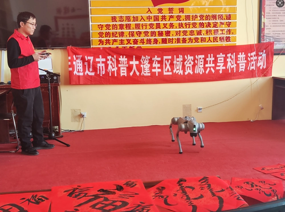 这场盛宴中,有扎鲁特旗蒙古族特有的传统艺术瑰宝展示——具有内蒙古非物质文化遗产之名的乌力格尔说唱艺术表演,有通辽市科普大篷车区域资源共享科普展品和机器狗表演,有书法爱好者们在春联书写中倾注对农牧民的新春祝福之情,还有精心准备的科普宣传品、科普图书和民族团结进步知识宣传单。