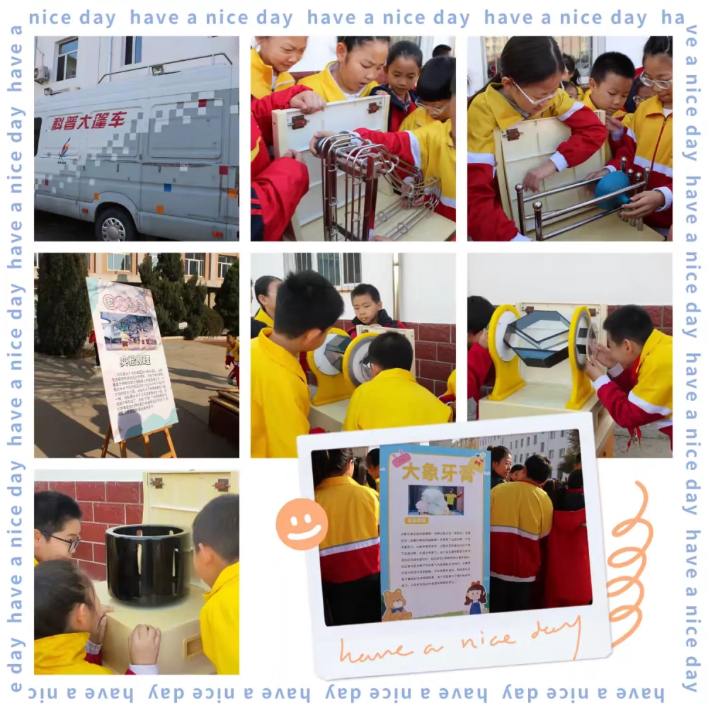 活动现场还设置了多个科技体验区,让学生能够亲身感受科技的魅力:科普大篷车、陀螺车轮、空气大炮、大象牙膏、马德保半球、套人泡泡、智能机器人……在体验区孩子们亲手操作各种实验仪器,探索着科学的奥秘,感受着科学的神奇。这些体验无不让他们对科技有了更直观、更深刻的认识,也让他们在互动体验实践中不断提升自己的科学素养和创新能力。边参观边动手操作,新奇的体验让孩子们流连忘返……