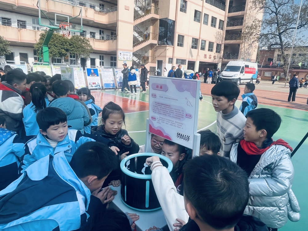 活动现场,展出了党的二十届三中全会、食品安全、航天航空、人工智能等科普展板。科普大篷车展示了一系列涵盖物理、思维、工程等多学科领域的互动展品,吸引众多学生驻足围观与操作体验。科协志愿者耐心为学生们讲解展品背后的科学原理,引导他们思考科学现象与日常生活的联系,让学生们在轻松愉快的氛围中感受科学的魅力与乐趣。