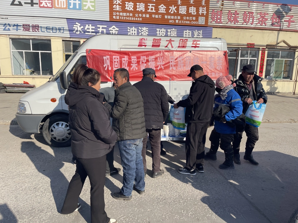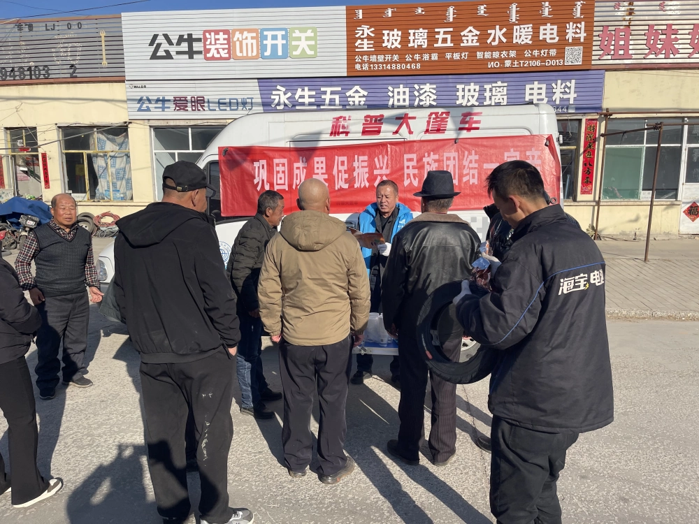 为了深入推进中华民族共同体意识的建设,巩固民族团结示范创建成果,促进中华民族持久繁荣发展。2月20日,土默特左旗科协科普大篷车走进兵州亥村,开展“巩固成果促振兴,民族团结一家亲”宣传教育活动,与村民们共同学习、交流,携手共筑中华民族的美好未来。