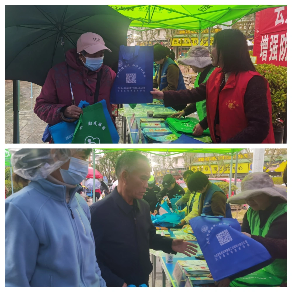 3月2日,云龙县科协联合县妇联、县委政法委、县委社会工作部、县公安局、县法院、县检察院、县司法局、县总工会、县科协、县中医医院等单位,组织开展了科普宣传、维权宣传、健康义诊为主要内容的“三·八”维权周宣传咨询志愿活动暨科普进社区活动。 天公不作美,活动当天,小雨淅淅沥沥一直不停,天气湿冷,但这丝毫没有影响大家的热情,各单位工作人员们热情洋溢,向群众宣传解释各种科普知识、法律知识,发放宣传资料,并认真解答群众提出的各种问题。活动当天,共发放反邪教宣传知识读本、防震避险、禁毒防艾、健康养生、民族团结进步、科普知识读本、《民法典》等各类科普知识、普法维权、政策法规知识宣传折页、宣传袋等3000余份,现场提供面对面咨询40余人次,切实将科普、法律、维权知识送到群众身边,进一步提高群众的科学素养,引导广大群众自觉遵法守法用法,学会用法律武器维护自身合法权益,切实增强群众的幸福感、获得感、安全感。