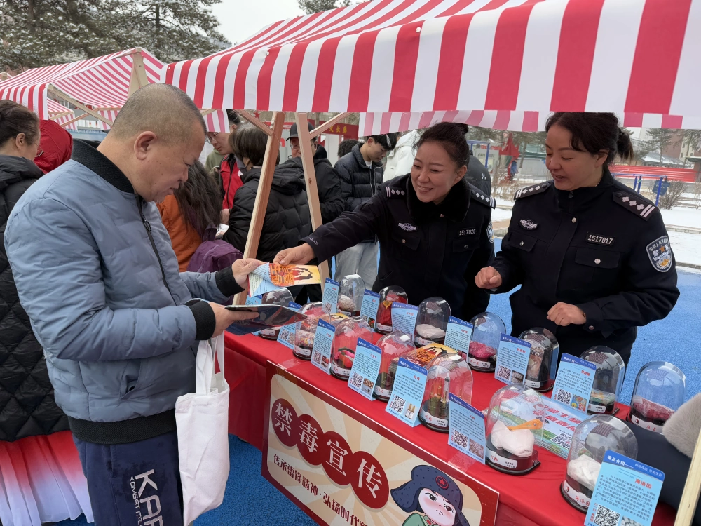 在政策宣传区,禁毒志愿者展示了仿真毒品模型,讲解毒品危害及防范方法,筑牢居民识毒、防毒、拒毒防线。垃圾分类志愿者通过互动游戏、知识问答,引导居民正确分类垃圾,践行绿色生活理念。