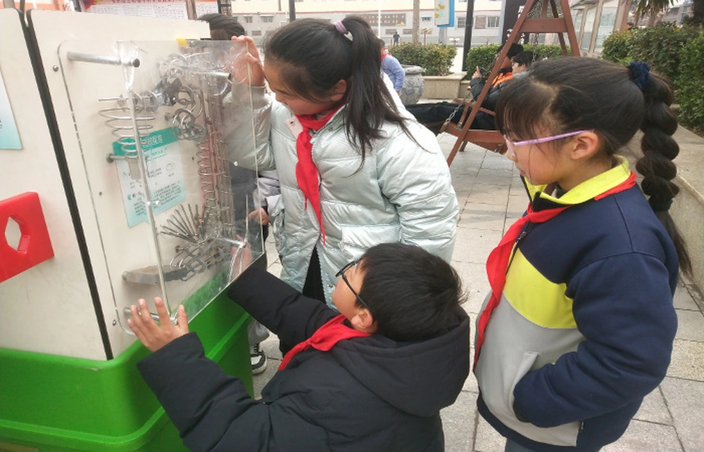 活动现场,满载着科学知识的“移动科技馆”科普大篷车为牛村小学的小朋友们带来了一场科普大餐。各种有趣的科普展品和运动体验装置,孩子们近距离感受到了科学的魅力。志愿者们现场讲解科学原理,鼓励大家动手操作,激发了孩子们对科学探索的浓厚兴趣。孩子们围在展品旁,眼睛里闪烁着好奇的光芒,不断提出各种问题,现场气氛十分热烈。