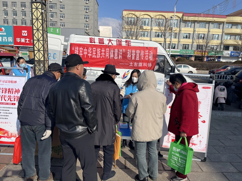 3月5日,土默特左旗科协“科普大篷车进社区”活动走进土左旗原政府广场,开展了铸牢中华民族共同体意识宣传教育活动。