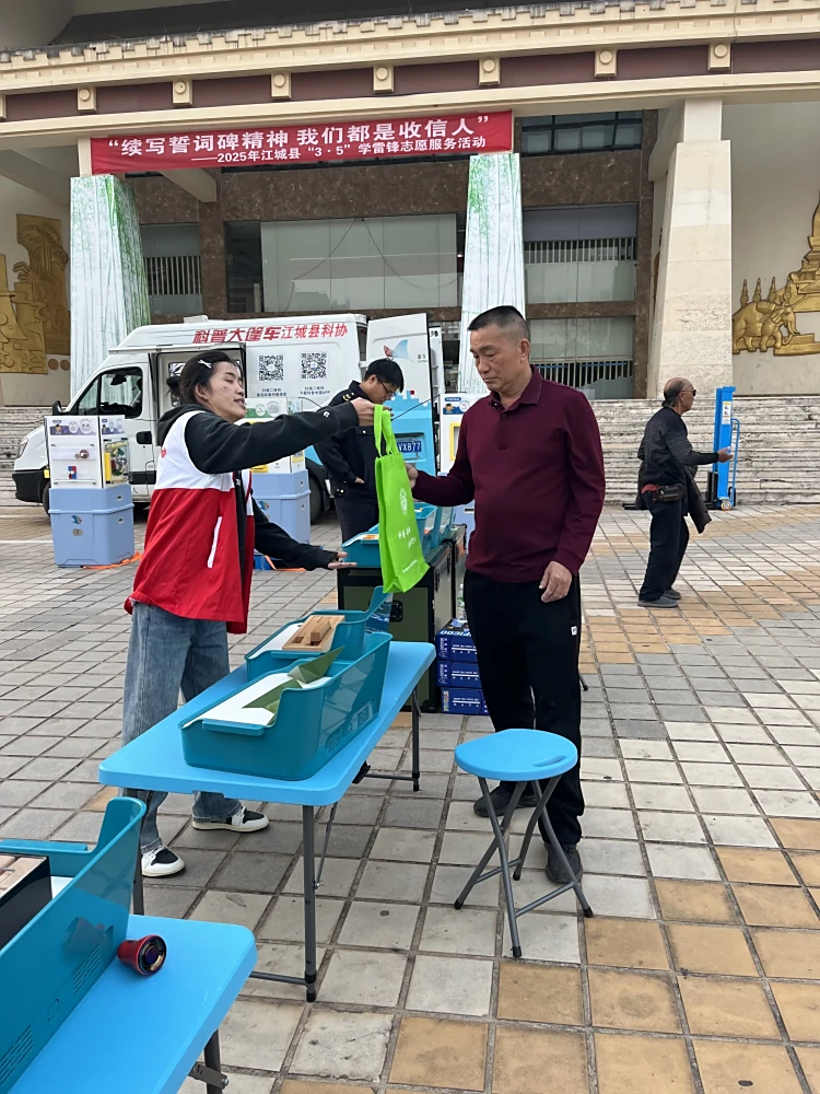 3月5日,在第62个全国“学雷锋纪念日”来临之际,江城县科协联合市场监督局、生态环境局、应急局、总工会等多部门组织志愿服务队到江城县喷泉广场开展“续写誓词碑精神、我们都是收信人”科普大篷车为主题的学雷锋志愿服务活动。