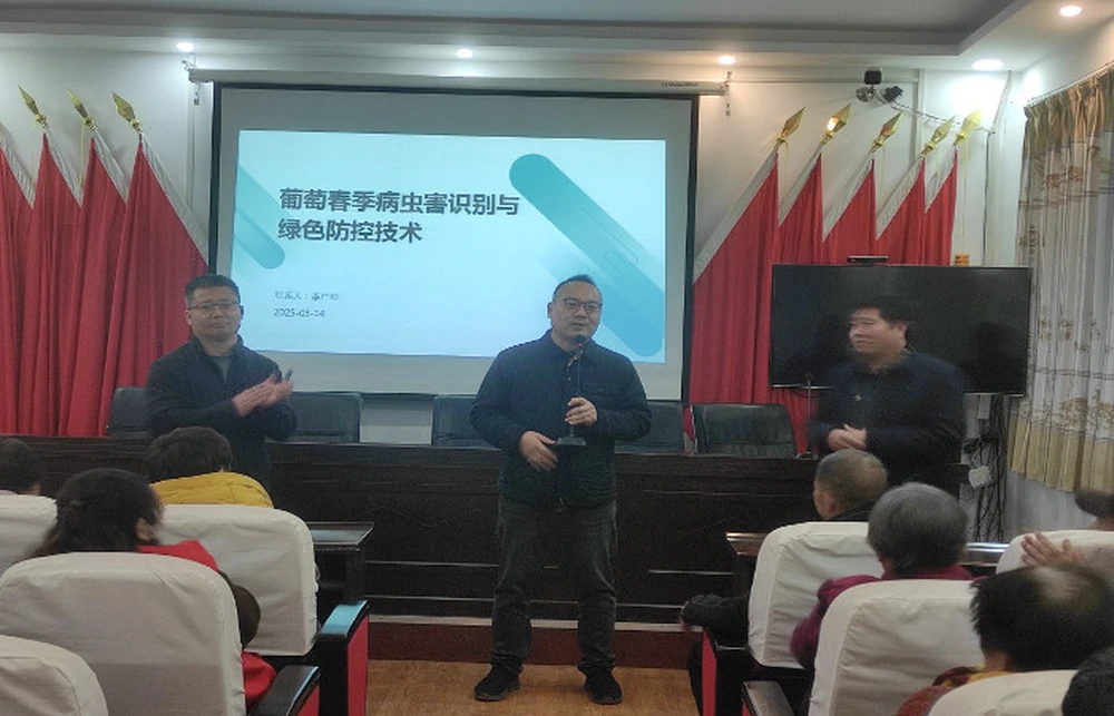 会议现场,两位专家结合张门葡萄的具体特点,围绕葡萄春季病虫害的产生原因、常见病虫害种类及鉴别办法、病虫害发生规律解析以及绿色防控技术等方面进行了详细讲解。参会的种植户认真听取专家的科学种植技术,结合每家每户的实际情况和专家适时进行咨询探讨,并针对打造张门葡萄的品牌进行了热烈的讨论。