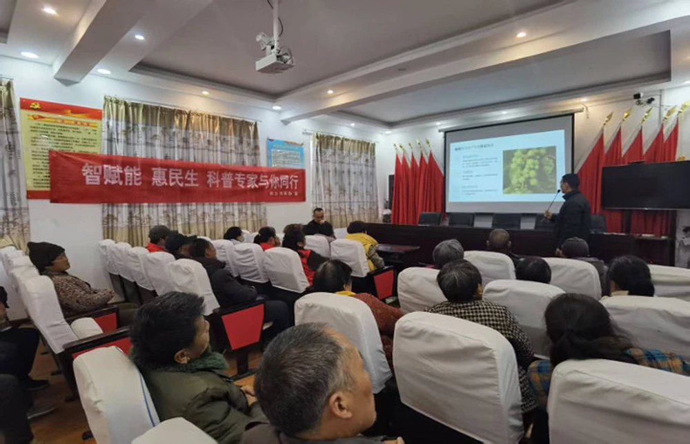 春耕正当时,科技助农忙。为提升葡萄种植户的春季管理水平,促进葡萄产业高质量发展,3月14日,新乡市科协、凤泉区科协联合凤泉区张门葡萄协会,携科普大篷车走进凤泉区南张门村开展农技协助春耕——葡萄科学管理活动。活动邀请河南科技学院果树培育专家王保全、市林业局果树病虫害专家李广帅为种植户进行现场讲解和技术指导。