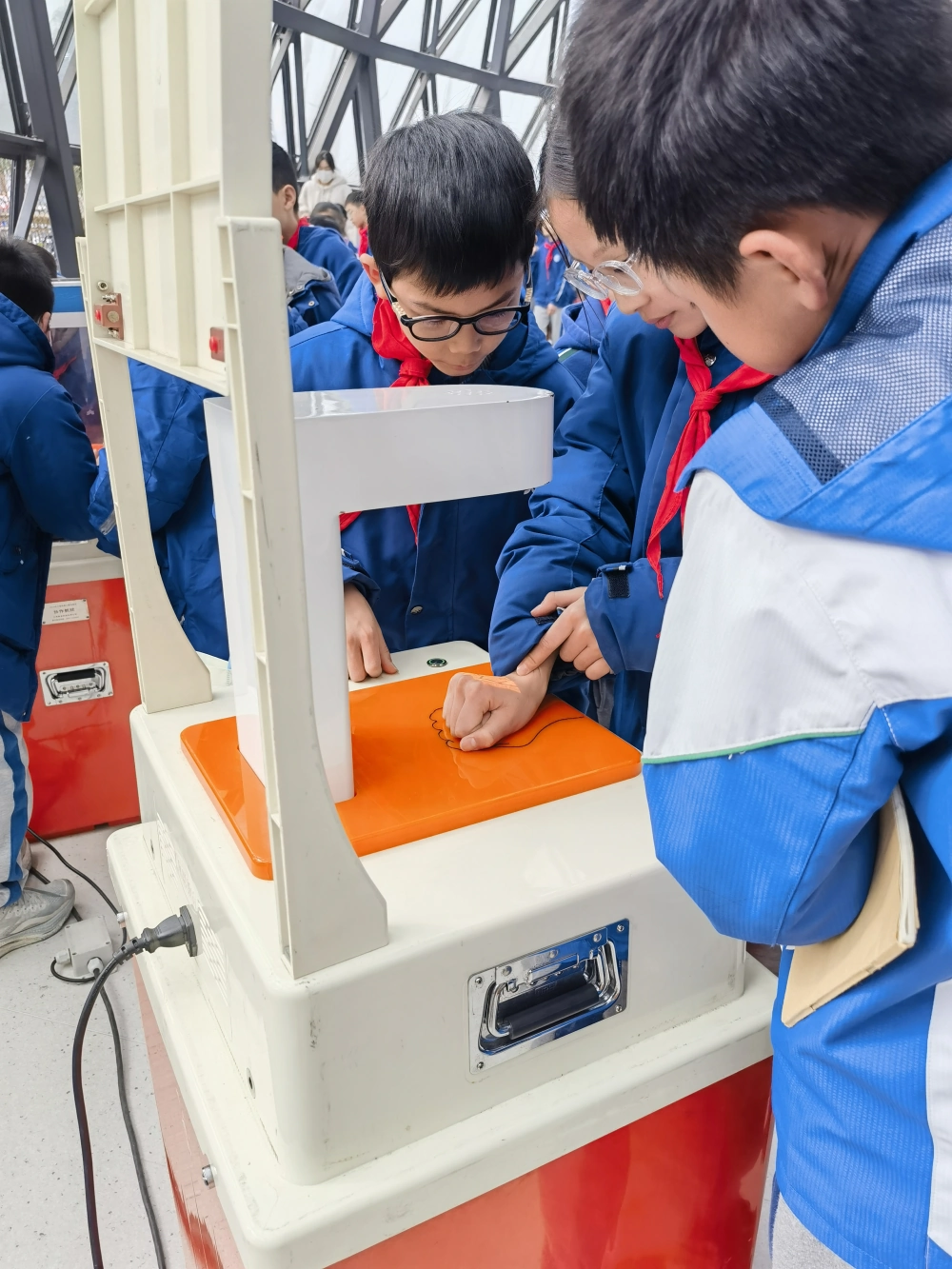 科普大篷车展品展示:展品涵盖了电磁、数学、生物等多个领域,孩子们通过动手操作,亲身体验科学的神奇。此次活动不仅让同学们感受到了科学的魅力,激发了他们对科学的兴趣和探索欲望,也为新学期的校园生活注入了新的活力。