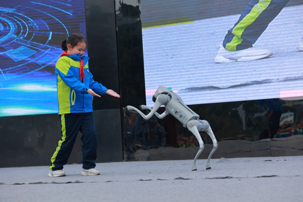 憨态可掬的机器狗表演吸引了全场学生的目光,让他们深刻感受到人工智能的独特魅力。