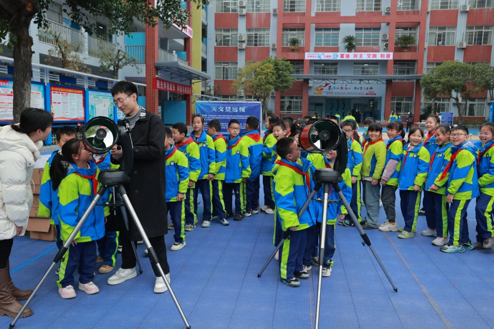 学生们透过天文望远镜观测神秘的星空和远方的风景,在学生心中播下了探索宇宙的种子。