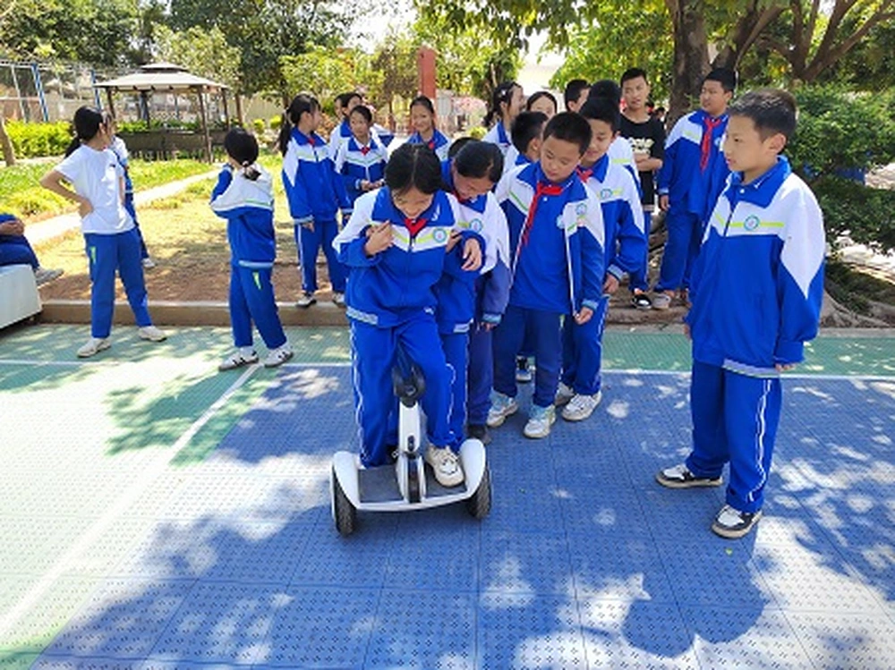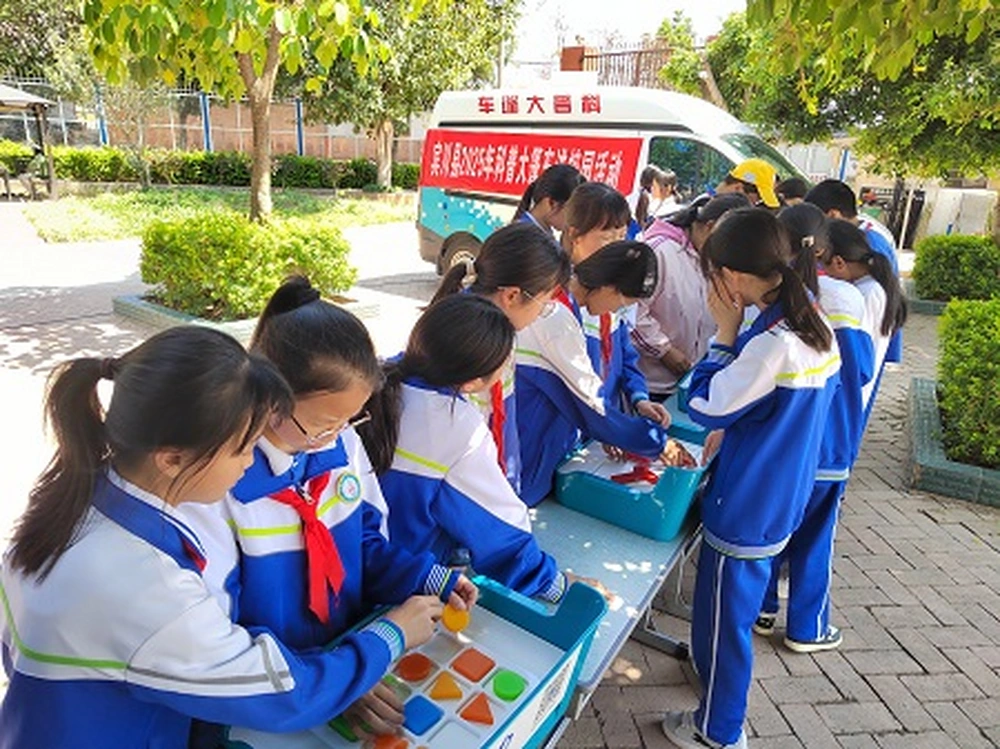 活动现场气氛热烈,科普大篷车展示了一系列集科学性、趣味性、互动性于一体的科普展品,科普内容涵盖物理、化学、生物等多个领域。活动中,学生们借助VR眼镜“遨游”浩瀚太空和神秘海底,开启前所未有的奇妙之旅。工作人员绘声绘色地讲解每件展品蕴含的科学原理,热情鼓励同学们动手操作,让大家在亲身体验中感受科技的神奇魅力,在同学们心中播下探索科学的种子。