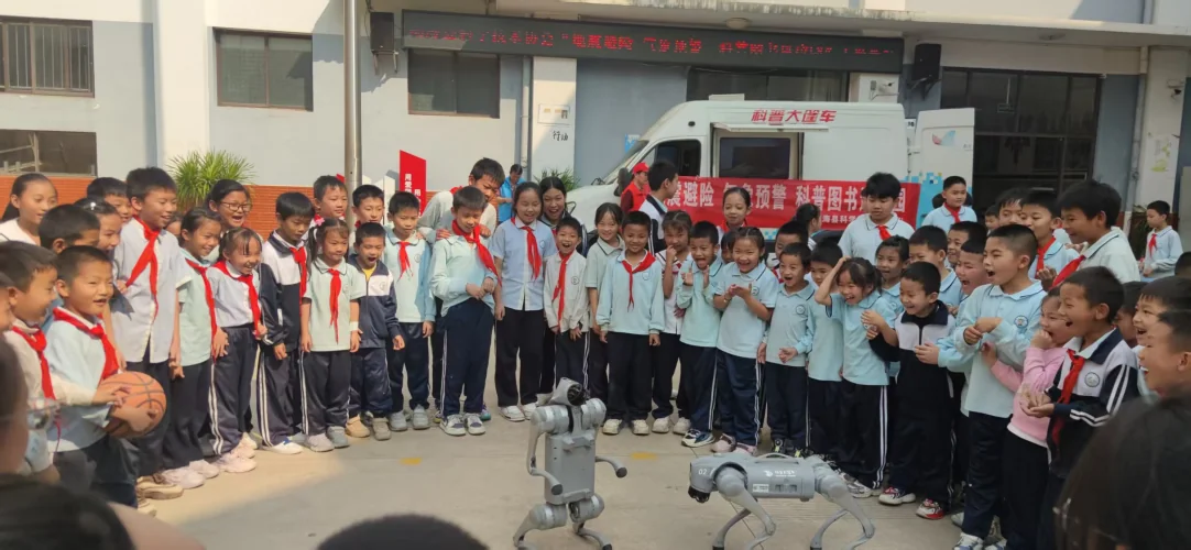 在本次活动现场,“科普大篷车进校园”活动播放了科普系列小常识,展览了18件车载展具等学科知识的运用,让学生能够将理论结合实际。学生在老师的带领下,有组织、有纪律地参观体验无人机飞行展示、机器狗表演,机器狗还和同学们打招呼、作揖比心,还跳舞、翻跟头,迎来了同学们一阵阵欢呼与喝彩。通过直观感知、实际操作、亲身体验的形式,为县一小景龙校区800余名师生呈现了一场集科学性、趣味性、参与性为一体的科普盛宴。宣传活动还发放了科普图书宣传资料300余册、宣传单1000余份。
