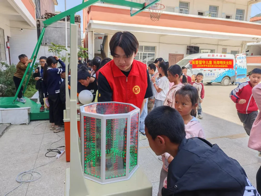 2025年4月月15日,罗平县科学技术协会走进九龙街道控戛完小,开展"关爱留守儿童·托举明天太阳"主题科普宣传活动。通过机器人互动表演、趣味科学实验、科技展品体验等多元化形式,为130余名留守儿童带来沉浸式科学启蒙,用科技温暖童心。