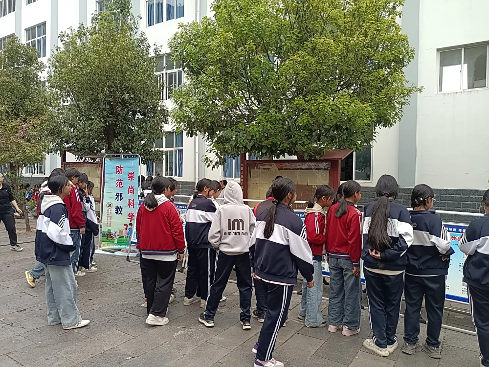 活动现场开展了巍山县反邪教巡展,巍山县反邪教协会反邪教宣传展板图文并茂地向师生们展示了如何辨别邪教、邪教的危害、反邪教工作的重要性等,铸牢了巍山县反邪教防线。