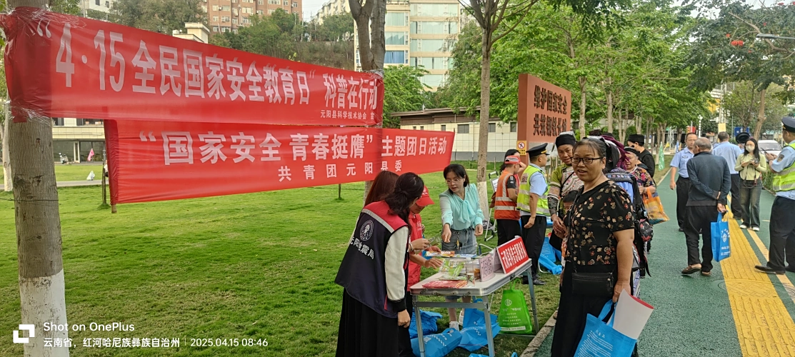 为深入贯彻落实总体国家安全观,增强全民国家安全意识,2025年4月15日,元阳县委国家安全委员会牵头,联合县委宣传部、县科协、教体局、卫健局、融媒体中心、团县委等单位,在全县范围内开展“国家安全教育日”主题宣传活动。活动以“全民国家安全教育·走深走实十周年”为主题,通过形式多样的宣传方式,推动国家安全知识深入人心。
